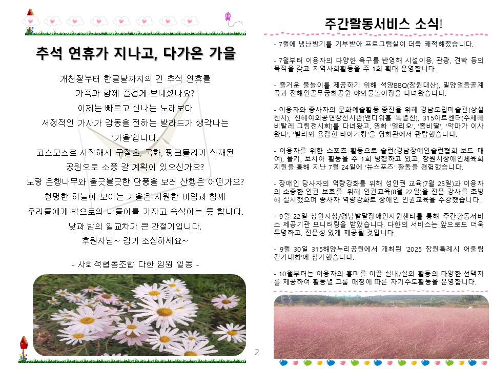 이전 보다 좋은 환경에서 주간활동 이용자를 위한 서비스를 제공할 수 있게 됐습니다.